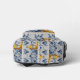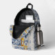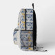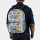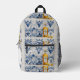 The entire surface of the backpack is covered with a printed design of traditional tiles in white and deep cobalt blue tones. The gracefully ornate cornucopia motifs dance among geometric patterns, creating a design that evokes historical Mediterranean facades. This pattern completely envelops the body of the backpack — front, sides, and top — transforming it into a true piece of portable art. Amidst this classic background, a bottle of limoncello stands out, designed with delicate contours and bright yellow tones. The bottle seems to emanate freshness and sunshine, as if it encapsulated the light of a hot Italian summer day in a single object. The contrast between the cool blue of the tiles and the radiant yellow of the bottle creates a magnetic and sophisticated visual balance. Made by Gusto Poetry - A Culinary Odyssey.