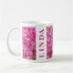 "Linda" in Elegant Pink Hydrangea Floral Lettering Coffee Mug