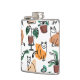 Line art drawing cats and flowers hip flask