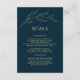 Line Art Leaves Deep Blue Elegant Wedding Details Enclosure Card