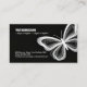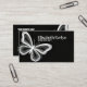 This striking 16:9 artwork features an artistically crafted butterfly positioned on the left (38% of the frame), with solid black negative space on the right (60-62%). The butterfly is formed entirely from bold and delicate white and gray lines, creating a sleek, contemporary look. The minimalist high-contrast design makes it an ideal visual element for business cards, adding a sophisticated artistic touch to professional branding materials.
