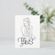 Simple black and white vintage inspired line drawing (original art by Suzanne Hein Creations) of a 1940s woman with a black script thank you with heart. The templates make it easy to customise this postcard with all your information. Perfect for bridal or birthday thank you or any special occasion for her.