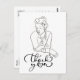 LINE DRAWING of 1940s Woman Thank You Postcard