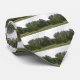 This pretty tie features a photograph of a line of trees and the edge of some grassland. The photo was taken in Britain on a nature reserve. The trees look like they are leaning to one side.