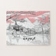 Line Painting of Japanese Temple Lake Mountain Jigsaw Puzzle