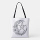 Lineart Flower Moon With Pentagram Monogram Tote Bag