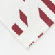 This large fleece blanket has a mid-century modern design of cranberry vertical lines with hexagons strung horizontally on a field of white.