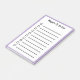 Personalise this lavender purple outlined to do list lined sticky notes pad by changing the name template. There are 10 lines with checkboxes to list your priorities of whatever needs to get done today. Or give as an office gift. Also, you can customise the type of list it is by changing the "to do" to something else like shopping.