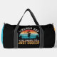 This striking black duffle bag celebrates the everyday hero, the lineman dad, with a bold graphic. It features a lineman silhouette on a power pole against a beautiful striped sunset. The text "LINEMAN DAD ★ LIKE A NORMAL DAD ★ JUST COOLER" makes a proud statement. Perfect for utility workers or as a thoughtful gift for Father's Day. Edit colour of the bag caps and body in the Design tool to your favored colours.