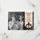 Modern and simple Fleur De Lis Banner Save the Date Announcements in peach featuring a scallop edge banner adorned with a chic damask flourish. This stylish save the date invitation is perfect for announcing your elegant wedding. Easy to customise, simply add a cute couple photo and your wedding details in the text fields provided. Click "Customise It" to find more personalisation options.