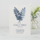 Navy blue palm leaves intertwined above your first names with a numeric date underneath and the details in small block letters at the bottom set against an oyster grey linen assimilated matte paper.