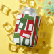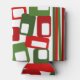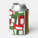 This can cooler has a mid-century modern Christmas design of lines and rectangles in retro shades of red and green.