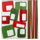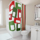 This shower curtain has a mid-century modern Christmas design of lines and rectangles in retro shades of red and green.