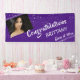 Welcome your graduation party guests and honour the graduate with this editable purple and white banner sign featuring the graduate's photo. The design has simple, clean white lines and muted stars with a brush script title "Congratulations NAME" and graduation year.