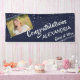 Welcome your graduation party guests and honour the graduate with this editable navy blue and white banner sign featuring the graduate's photo. The design has simple, clean white lines and muted stars with a brush script title "Congratulations NAME" and graduation year.