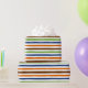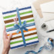 Trendy Lines gift wrapping paper. Green, brown, orange, blue. A perfect colour combination!