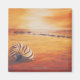 Warm, golden hues indicates that the evening sun is setting. Without any single person, there is only a giant shell left on the beach, as if it is listening the whisper of tides. Casting a long shadow, the shell points out the approach of night and the loneliness of mind. A wave of tides beat the shore, breaking the silence and stillness of the whole picture. Central of the picture, a ray of sunlight passing through horizon, suggesting it is going to end the day. The floating hairy clouds give this picture a more solitary atmosphere.