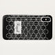 Graphic linked ovals inspired black & white mono patterned iphone case. Personalise with your name or initial. Currently reads Raquel. Design by Sarah Trett. www.sarahtrett.com