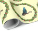 A lineolated parakeet is shown inside a Christmas wreath on this lovely Christmas wrapping paper