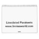 Linnie Parakeet 2014 Calendar. Each month beautiful parakeet photos. The Lineolated Parakeet every month calendar.