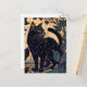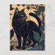 Linocut of a Black Cat Among Plants with Yellow Ba Postcard