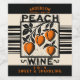 Fun wine labels for your homemade peach wine, shrub, or cordial, featuring linocut or linoleum cut style peaches, personalised with your name and text and choice of background colours.