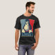 I give wanted to give this a 4 instead of a 5 because these Basic DARK T0shirts run unexpectedly SLIM or Narrow. Which is great if you do not have a potbelly, but I have a paunch. It isn't the shirt's fault that I've got a beer belly. The design and shirt itself is a quality cotton shirt. The color is more of a deep purple, but still a very pretty color. The Basic DARK T-shirts run a bit SLIMMER than the Basic Ts. The neck is a fraction narrower (or seems to be narrower) also. I'm a paunchy middle-aged woman and my neck is 12 inches (31cm) thick and the neckline fell about the same as in the photo of the man, and I had the desire to tug it a bit. So if you're a thick necked man or like loose shirts, be aware these are slimmer shirts. Once I get rid of my lockdown paunch it'll look great. The shirt washed well in cold water with no apparent bleeding. We don't have a dryer, so it hung dry. Did not shrink. Love the colors and the design. The design looks smaller on my shirt than it does on the model on-line. But still, it looks good on the shirt. The printing looks as it does on the model, just the size seems fractionally smaller. Washed garment in cold water, hung dry and design appeared unaffected.
