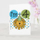 A cute lion in a party hat, blue and green polka dots and balloons, and text that reads "I'm 4" is featured on cute Lion 4th Birthday T-shirts, sweatshirts, mugs, cards, stickers, bags, and more.