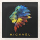 Lion abstract colourful art king crown for men glass coaster