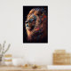 This wall art poster is a captivating abstract representation of a lion set against a dramatic black background. The artwork portrays the essence of the lion's regal nature and power in a simplified yet striking manner. The focal point of the poster is a stylized lion rendered in bold, expressive brushstrokes. The artist's use of abstract forms and lines adds a sense of dynamism and energy to the composition, capturing the lion's strength and presence.