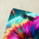 The fabric is soft and fluffy, feels great on the skin. The quality seems to be very good, I have not yet tested how absorbent the fabric is. The colors were vivid, the lines of the design clear, all in all, a great result.
