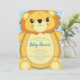 Cute lion baby shower design with a cartoon stuffed animal style lion is great for a safari, zoo or circus theme baby shower! Great with a blue background for a baby boy on the way!