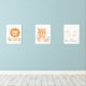 Create a warm and playful atmosphere in your child’s room with this charming set of three nursery wall art prints featuring a cute cartoon lion, bear, and elephant. Designed in a minimalist Scandinavian style with soft pastel colours and clean lines, these prints blend perfectly with modern, neutral, or nature-inspired nursery décor. Ideal for above the crib, playroom, or reading corner, this coordinated set adds a touch of whimsy, joy, and personality to your little one’s space. A thoughtful gift for new parents or a beautiful finishing touch to your own nursery design.