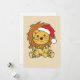 The Lion at Christmas with fairy lights. Funny animals with gifts and snow for the holidays. A sweet Christmas greeting. Lions are cute animals and perfect for Christmas.