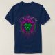 I give wanted to give this a 4 instead of a 5 because these Basic DARK T0shirts run unexpectedly SLIM or Narrow. Which is great if you do not have a potbelly, but I have a paunch. It isn't the shirt's fault that I've got a beer belly. The design and shirt itself is a quality cotton shirt. The color is more of a deep purple, but still a very pretty color. The Basic DARK T-shirts run a bit SLIMMER than the Basic Ts. The neck is a fraction narrower (or seems to be narrower) also. I'm a paunchy middle-aged woman and my neck is 12 inches (31cm) thick and the neckline fell about the same as in the photo of the man, and I had the desire to tug it a bit. So if you're a thick necked man or like loose shirts, be aware these are slimmer shirts. Once I get rid of my lockdown paunch it'll look great. The shirt washed well in cold water with no apparent bleeding. We don't have a dryer, so it hung dry. Did not shrink. Love the colors and the design. The design looks smaller on my shirt than it does on the model on-line. But still, it looks good on the shirt. The printing looks as it does on the model, just the size seems fractionally smaller. Washed garment in cold water, hung dry and design appeared unaffected.