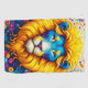 This golf towel has a lion design on it.