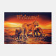 A cute family of lions in the savannah in painting look and orange colours. A sweet image for all big cat lovers. Customise to personalise this gift idea!