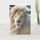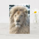The King of the Jungle. Birthday card with a beautiful, majestic, caramel and cream coloured white lion against a background of trees. Greetings card with a customisable oil painting style design for you to personalise with your own text, pictures and ideas. Created using original photographs and digital effects by Jess Perry.