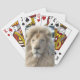 The King of the Jungle. Portrait of a beautiful, majestic, caramel and cream coloured white lion against a background of trees. Playing cards with a customisable oil painting style design for you to personalise with your own text, pictures and ideas. Created using original photographs and digital effects by Jess Perry. Other style options available.