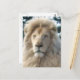 The King of the Jungle. Portrait of a beautiful, majestic, caramel and cream coloured white lion against a background of trees. Postcard with a customisable oil painting style design for you to personalise with your own text, pictures and ideas. Created using original photographs and digital effects by Jess Perry.