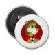 Button bottle opener with illustration of head of cute smiling lion dress in red sports dress holding a football ball, in red circle, illustrated by Radka Kavalcova