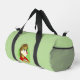 Duffle Bag with illustration of head of cute smiling lion dress in red sports dress holding a football ball, in green circle, illustrated by Radka Kavalcova