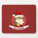 Mousepad with illustration of cute little lion with Santa's hat in red circle, Christmas holidays design for children, editable template design with custom field for your own text, illustrated by Radka Kavalcova