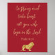 An amazing poster, this design has a red background with Psalm 31:24 written in golden cursive font "Be strong and take heart, all you who