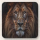 Lion King with a serious expression beverage coaster -This close-up image features the face of a lion with a serious expression. The lion has a dark brown mane and a golden brown nose, with deep brown eyes and long curved whiskers. Its fur is thick and shiny. The black background creates a striking contrast that makes the lion's features stand out. - Bring some personality to a party or your bar with our Animal Coaster Collection. #cats, #catcoasters, #animalcoasters