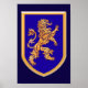 Linda Baysinger Peck's painting of a gold heraldic lion, on azure blue shield background. For those who enjoy renaissance faires and mediaeval art.