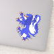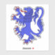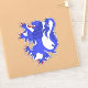 This design by Richard H. Fay features a heraldic lion rampant azure, a blue lion depicted in profile rearing up on its hind legs, ready to stave off all attackers.