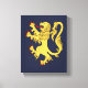 This design by Richard H. Fay features a heraldic lion rampant, a lion depicted in profile rearing up on its hind legs, ready to stave off all attackers.