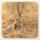 Lion Square Paper Coaster. A gorgeous photo of a juvenile lion resting in the shade of a tree on the African savanna. Photo by Juanma Clemente-Alloza.