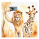 Lion taking selfie with giraffe photo print